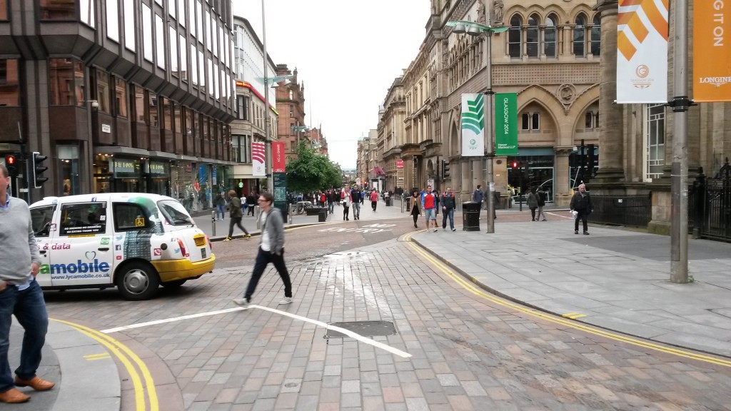 Ich habe mir kurzfristig überlegt, die Route zu ändern, aber das Ziel nicht aus den Augen verloren. Anstatt wie geplant von Moffat in Richtung Edinburgh zu fahren, habe ich jetzt Kurs auf Glasgow genommen. Dann hebe ich mir Edinburgh für den Schluss auf. Da ich diese Strecke aber nicht vorgeplant hatte, musste ich auf die Routenführung aus einem keinen Büchlein zurückgreifen, das ich mir im Vorfeld gekauft hatte. Den Weg zu finden war nicht schwer, nur wurde ich fast den ganzen Tag von der parallel laufenden Autobahn beschallt, wenn auch der Fahrzeugverkehr dadurch erheblich reduziert war. Da freue ich mich doch wieder auf die Ruhe des Hochlandes. Nach 101 km hat ich in Glasgow meine Unterkunft gefunden. W4.26617 N55.86718