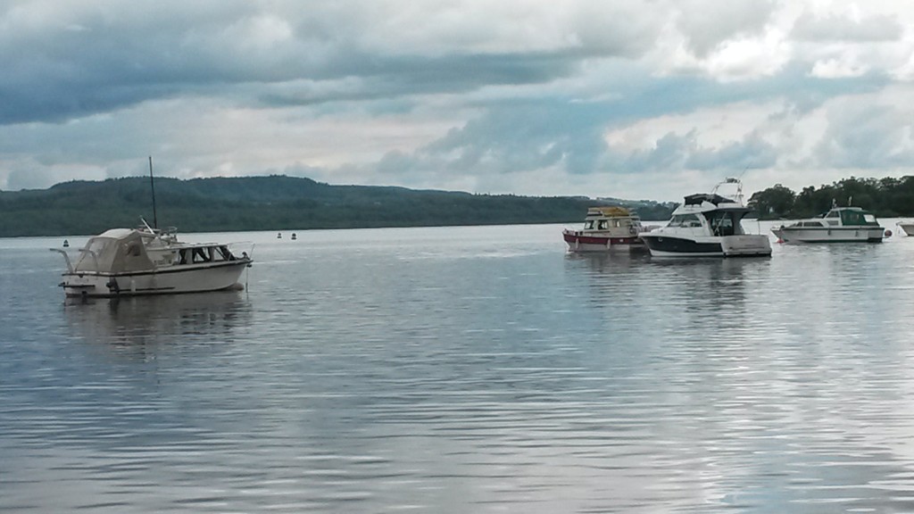 Damit ist in einem alten Lied über die bonnie banks (prächtige Ufer) of Loch Lomond der Weg der Lebenden gemeint. Und diesen Weg entlang des Forth and Clydecanals und danach am Fluss Leven aus Glasgow heraus konnte man wirklich genießen. Schönster Sonnenschein begleitete mich dann auch am Loch Lomond, den ich an der westlichen Seite in seiner vollen Länge passiert hatte. Da störten auch gelegentliche Regenschauer nicht weiter, da sie nur ein kurzes Gastspiel gaben. Zwischendurch waren die Klänge von Bagpipes zu hören, einmal begleitete ein Musiker ein frisch vermähltes Paar auf seinem Weg vom Standesamt zur Feier über mehrere hundert Meter. Nur klappte es am Schluss nicht so richtig mit der Suche nach der Unterkunft, da am Samstag einen Tag vor Vatertag das meiste ausgebucht war. Daher musste ich noch eine Steigung zum Ende drauflegen und habe nach 96km in Crianlarich unterhalb des Berges Ben More, der mit der1174m einer der höchsten Schottlands ist und auf dem noch einige Klekse Schnee lagen, die Tagesetappe beendet.W4.61889 N56.39325